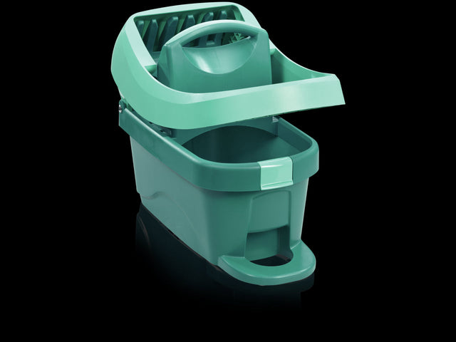 De ideale oplossing voor het snel reinigen van grote oppervlakken. De doekpers Profi bestaat uit een compacte emmer met een inhoud van 8 liter en een persopzetstuk, die eenvoudig en makkelijk met een druk van de voet bediend kan worden. De mopdoekpers is geschikt voor de vloermop Profi. En zo werkt het: De mopdoek wordt met de voetbediening van de beugel losgehaald en in de pers gelegd, vervolgens wordt de pers eveneens met de voet bediend. Klaar. Zonder met uw handen in vuil water en zonder te bukken, wordt de mopdoek net zo droog als met de hand uitgewrongen. Als de mopdoekpers niet wordt gebruikt, kan de persopzet worden verwijderd en in de emmer worden bewaard. Zo past de emmer plaatsbesparend in kasten. Bij het volgende gebruik hoeft u alleen maar de pers te plaatsen, vast te klikken en klaar. Voor het transport van de emmer tijdens het poetsen, is de persopzet uitgerust met een praktische greep. Voor iedereen, die de mopdoekpers lievert verrolt in plaats van draagt, zijn er twee soepele wielen direct aan de onderzijde van de emmer aangebracht. De vloermop is met zijn mopbreedte van 42 cm, 360°-scharnier en voetbediening perfect afgestemd op de mopdoekpers Profi. Met 3 jaar garantie.
